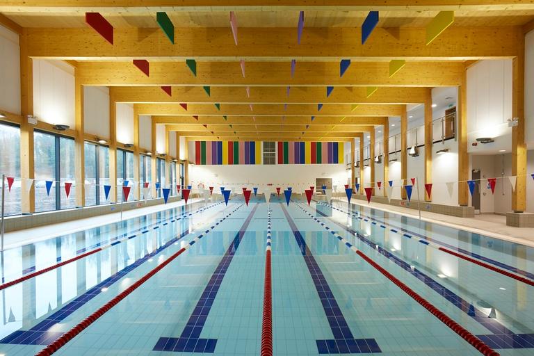 The Guncast team carried out the pool and filtration design, pipework fitting and installation, environmental control and more, all finished to the highest standards.This FINA regulation, 25-metre competition pool is packed with functionality and hidden features, such as starting blocks, turn boards, backstroke warning and false start indicators.This colourful pool with geometric surroundings is a brilliant addition to the school’s new sports centre and provides an enjoyable space for students to train. The pool tank was designed to FINA/ASA standards & regulations incorporating a facility for full competition electronic touch pad timing systems with automatic instant score board display.